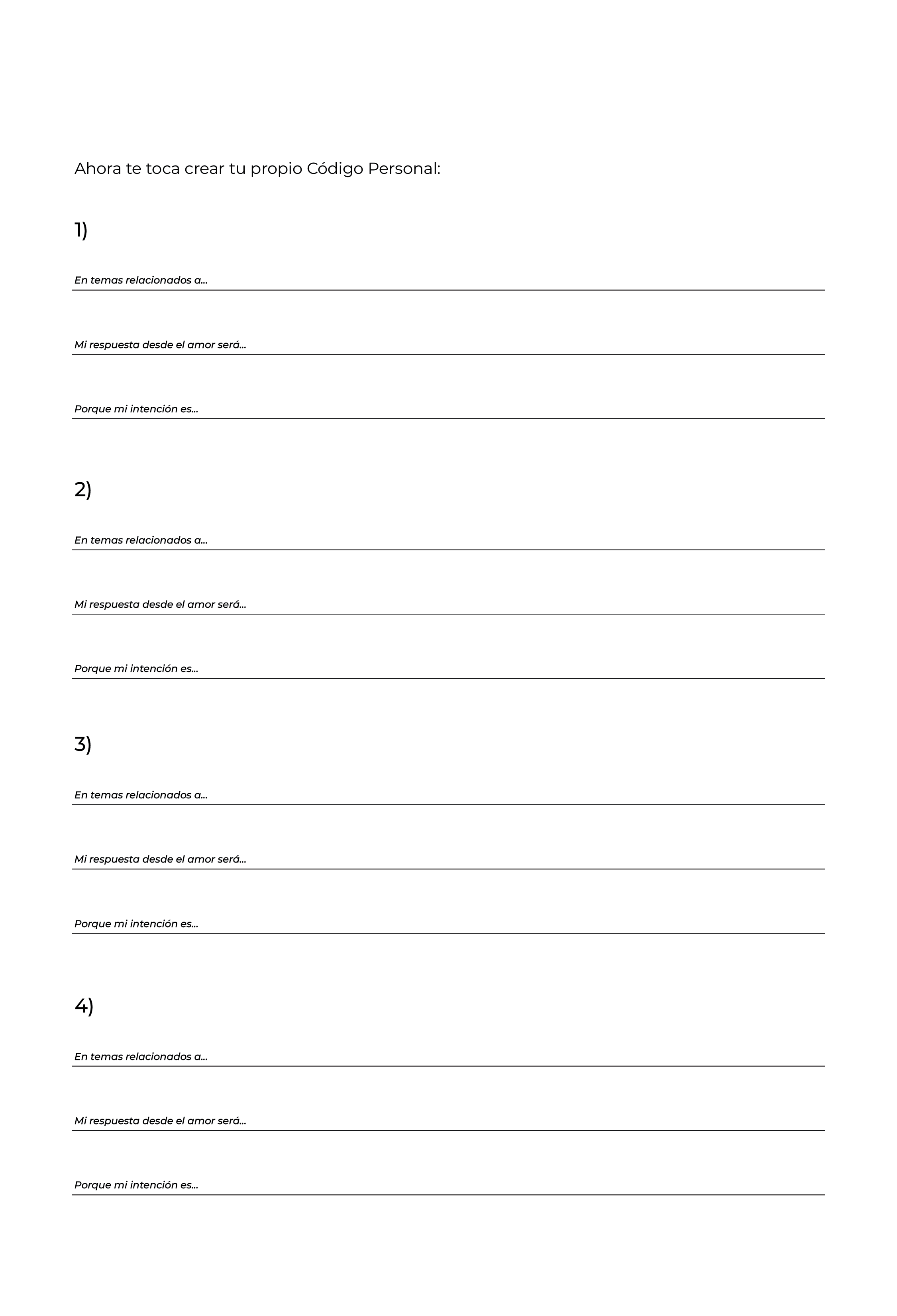 Solo, quisiera mencionar dos palabras claves que nos ayudan mucho a poder dormir en paz cada noche: el perdón y el agradecimiento. Ambas palabras están intrínsecamente ligadas al amor, de manera que pueden ser parte de nuestro código personal, por ejemplo… perdonaré siempre a pesar de todo. Y la otra posible frase podría ser: Voy a vivir mi vida desde el agradecimiento. Ambos conceptos dan para mucho! pueden ser por sí mismos un tema para retiro.